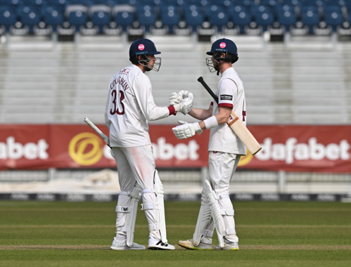 The Red Rose ticked their lead over 300 in the evening session, as Coughlin was joined by Tom Bailey as they prepared to face the second new ball and the former Durham man smashed his first six of the innings.