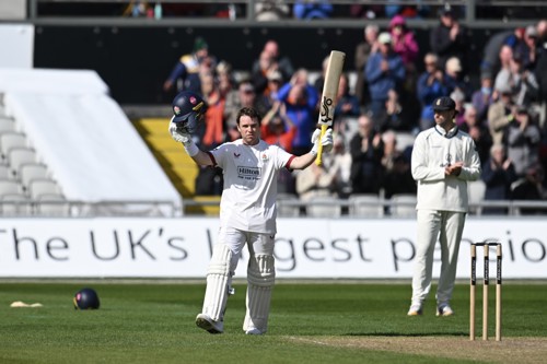Having elected to bat, the Red Rose racked up 557 all out, including 106 for Matty Hurst, 160 for Chris Green and 130 for Hartley. From 302-8, Green and Hartley shared 212 for the ninth wicket - a Lancashire record stand for that wicket in first-class cricket.